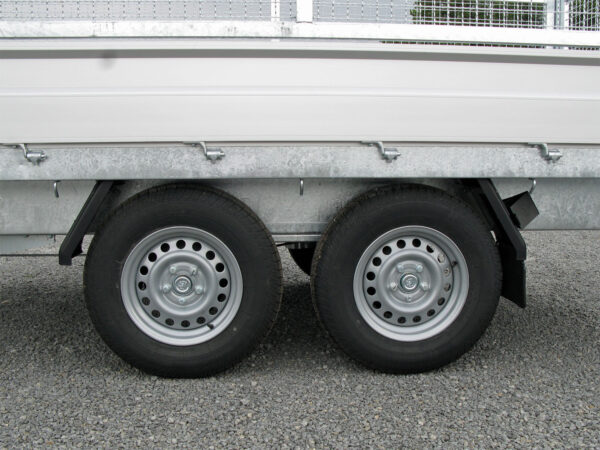 Der Hapert Cobalt HM-2 – 3500 ist ein robuster Dreiseitenkipper mit elektrischer Bedienung per Batterie und einem soliden Hydraulikzylinder. Das vollbadverzinkte, komplett geschweißte Fahrgestell sorgt für maximale Stabilität. Das Modell beinhaltet einen 600 mm hohen Gitteraufsatz und ein TÜV-geprüftes Ladungssicherungssystem. Die neuen Bordwandscharniere ermöglichen eine einfache Befestigung von Zubehör wie Ladungsnetzen. Die Aluminium-Wände sind 30 cm hoch und mit robusten eingelassenen Verschlüssen versehen. Zudem verfügt der Kipper über vier herausnehmbare Eckrungen sowie ein schweres klappbares Stützrad. Der vollverzinkte 3 mm Stahlboden garantiert Langlebigkeit, während die Standard-Bereifung 13 Zoll beträgt (optional mit 14 Zoll FW erhältlich). Gegen Aufpreis sind eine Nothandpumpe und ein Batterieladegerät verfügbar.