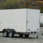 Der Hapert Sapphire L-2 – 2700 ist ein robuster Tieflader-Kofferanhänger, ausgestattet mit Türen hinten und einer Seitentüre vorne rechts für optimalen Zugang.