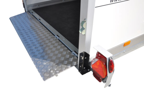 Der clevere Kofferanhänger mit intelligenter Absenkmechanik ermöglicht müheloses Be- und Entladen dank hydraulisch absenkbarer Ladefläche. Der flache Auffahrwinkel von nur 4 bis 6 Grad sorgt für Komfort. Mit einer integrierten Auffahrklappe und einer nach oben öffnenden Heckklappe bietet dieser Anhänger optimale Bedingungen für sicheres und bequemes Verladen. Der robuste, rutschhemmende Boden sowie die stabilen Seitenwände mit GFK-Beschichtung garantieren Langlebigkeit. Optional mit Wippe für den Motorradtransport erhältlich.