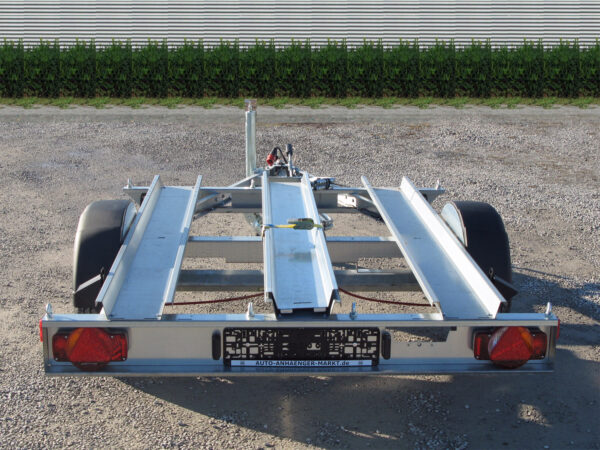 Der Motorradtransporter ist sowohl in einer ungebremsten als auch in einer gebremsten Ausführung erhältlich. Beim gebremsten Modell gehört ein Anhänger-Stützrad zur Serienausstattung. Optionales Zubehör: Schiebestützen, Radstoßdämpfer (mit und ohne 100 km/h-Zulassung) sowie ein Kunststoff-Werkzeugkasten für flexible Anpassungsmöglichkeiten.