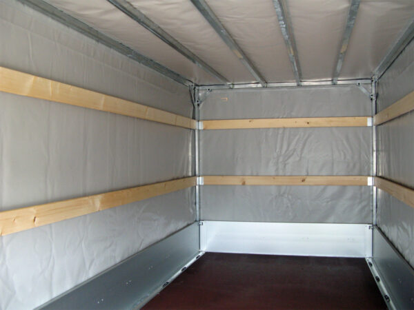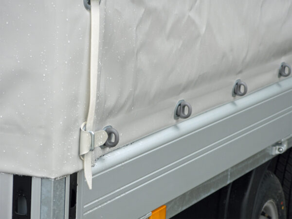 - Planenaufbau: 1800 mm Innenhöhe, hochwertige 680 g/m² Gewebeplane in Grau