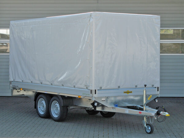 Der Humbaur HT254118 ist ein robuster Anhänger für den professionellen Einsatz. Er verfügt über einen Planenaufbau mit einer Innenhöhe von 1800 mm in Grau, hergestellt von Planen-Center Ulm.