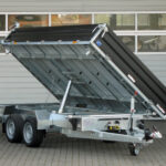 Der Humbaur HTK 3500.31 STAHL ist ein robuster Dreiseitenkipper mit einer Stahlbordwand, ausgestattet mit Rampen (2.650 mm lang im Schacht) und stabilen Stützen für vielseitige Einsätze. Sein tauchbadverzinktes Fahrwerk, der Rahmen und die aus einem Stück gefertigte Stahl-Kippbrücke garantieren maximale Haltbarkeit und Stabilität. Sechs im Brückenboden montierte Anbinderinge (je 800 kg Zugkraft) sorgen für eine zuverlässige Ladungssicherung, während die hintere Klappe pendelbar ist. Ein hochwertiger, hartverchromter 4-stufiger Qualitäts-Kippzylinder und eine leistungsstarke Hydraulikeinheit bieten eine zuverlässige Kippfunktion. Der vormontierte Bohlenschacht dient als Vorbereitung für Alubohlen. Das Modell ist mit einer Elektro- und Handpumpe ausgestattet, und der Kippwinkel beträgt ca. 45° nach hinten und seitlich.