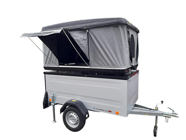 Das auf dem Deckel montierte Hartschalendachzelt ist durch sein aerodynamisches Design weniger windanfällig und ist regen- und spritzwassergeschützt. Es lässt sich mittels 4 Gasdruckdämpfern innerhalb von wenigen Minuten einfach auf- und auch wieder abbauen. Es bietet ausreichend Platz für 2 Erwachsene.
