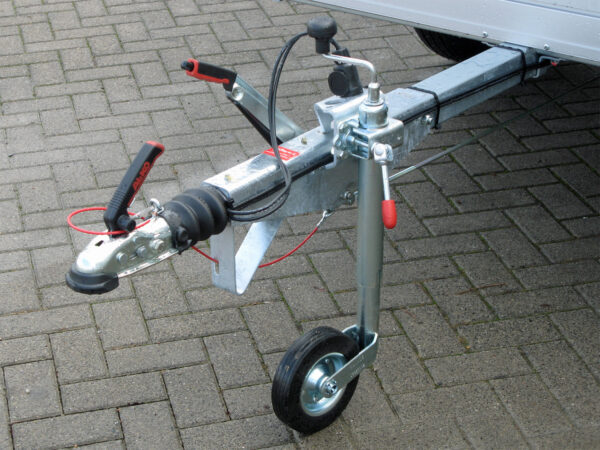 Die Bodenplatte besteht aus wetterfestem finnischem Birkenholz, ist 15 mm dick, UV-beständig und vollständig unterstützt sowie im Rahmen eingeschlossen. Für zusätzliche Sicherheit sorgt der selbstsichernde Verschluss sowie die integrierte Schiene für Ankerhaken. Der Anhänger ist mit einem Stützrad bei gebremsten Anhängern ausgestattet und verfügt über einen 13-poligen Stecker.