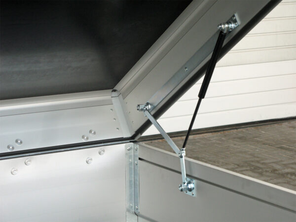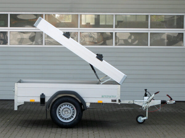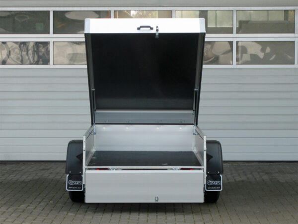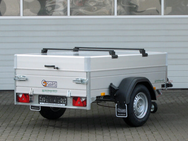 Der Saris MC 255 133 750 1 ist ein hochwertiger Deckelanhänger, ausgestattet mit einem stabilen Aluminium-Deckel, der nach hinten geöffnet werden kann und mit einer langlebigen GFK-Platte versehen ist. Die Bordwände bestehen aus Mehrkammer-Aluminium, während die verschweißten und feuerverzinkten Rahmenteile maximale Stabilität garantieren.