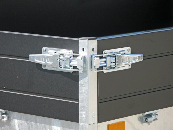 - Doppelwandige Aluminium-Bordwände mit Spannverschlüssen (30 cm hoch)