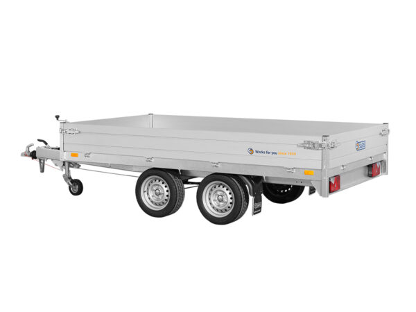 - Doppelwandige Aluminium-Bordwände mit 30 cm Höhe und Spannverschlüssen