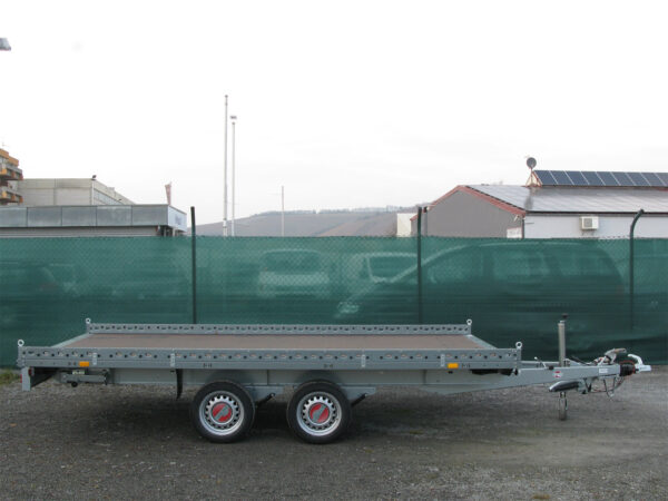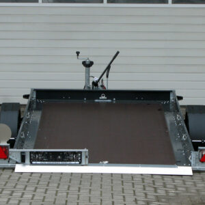 Der Carrier XL wurde speziell für schwere Fahrzeuge entwickelt und bietet eine geschlossene Bodenstruktur mit Rampenschacht und Reling. Ausgestattet mit einem 13-Zoll-Fahrwerk (195/50 R13) sowie Teleskopkurbelstützen, garantiert er eine hohe Stabilität beim Transport.