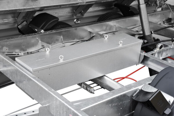 Der STEMA SHDK 27-30-18.2B E Pumpe ist ein leistungsstarker Tandem-Hochlader mit V-Deichsel und elektrischer Pumpe für die Kipphydraulik. Sein Fahrgestell und die Kippbrücke sind aus massiven, geschweißten Stahlprofilen gefertigt und vollständig im Tauchbad feuerverzinkt für maximale Langlebigkeit. Die Ladefläche aus verzinktem Stahlblech ist mit drei zusätzlichen Längsträgern ausgestattet, um eine optimale Lastverteilung zu gewährleisten. Die verzinkten Stahlblech-Bordwände sind allseitig abklapp- und abnehmbar, während die Rückwand pendelbar ist und erhöhte Eckrungen für eine größere Durchgangshöhe beim Entladen bietet. Sechs Schwerlast-Zurringe (je 800 daN Zugkraft, DEKRA geprüft) sind im Brückenboden montiert, um eine sichere Ladungssicherung zu gewährleisten. Das Modell verfügt zudem über eine Auflaufbremse, ein Automatik-Stützrad, moderne Multifunktionsbeleuchtung mit Rückfahrscheinwerfer sowie zwei Unterlegkeile mit Halterung und eine Service-Stütze für zusätzliche Stabilität.