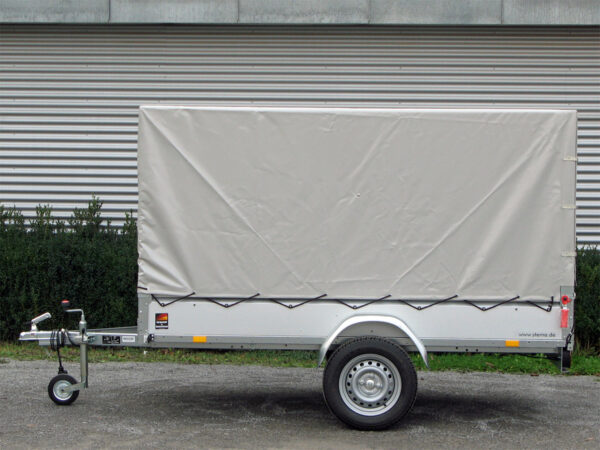 Der STEMA STL 750 O1 7.5-25-13.1 ist ein stabiler und vielseitiger Kastenanhänger mit einer Hochplane, die eine Innenhöhe von 135 cm bietet. Dank seines robusten Fahrgestells und der wartungsfreien Kompaktradlager sorgt er für eine optimale Straßenlage und Langlebigkeit.