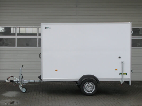 Das Unsinn UKU 301519-14-14 ist ein Aktionsmodell mit 100 km/h, ausgestattet mit Stoßdämpfern und 2 Schiebestüten für optimale Nutzung. Das einzigartige, verwindungssteife Aluminiumfahrgestell sorgt für sichere Fahreigenschaften, während das verstärkte, automatische Stützrad für eine stabile Positionierung des beladenen Anhängers sorgt. Die gebremste Alko Auflaufeinrichtung bietet zusätzliche Sicherheit, mit einer Tragkraft von 500 kg.