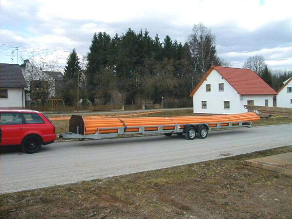 Der Unsinn UR 10513-35-14 ist ein robuster Rohranhänger mit einem verwindungssteifen Längsträgerfahrgestell, das für optimale Fahreigenschaften sorgt. Seine Hohlprofilkonstruktion ist verschweißt und im Tauchbad feuerverzinkt, was eine hohe Lebensdauer gewährleistet. Die Ladungssicherung wird durch Verstärkungsträger mit diagonaler Befestigungsmöglichkeit für Spanngurte sowie eine zusätzliche Abstellstütze hinten optimiert. Die Ladefläche bietet eine mittig platzierte Ablagebox mit einer Länge von ca. 2000 mm sowie Querträger mit Holzleisten. Die elektrische Ausstattung umfasst eine Beleuchtung mit 13-poligem Stecker, Rückfahrscheinwerfer sowie eine Steckdose mit Zwischenkabel.