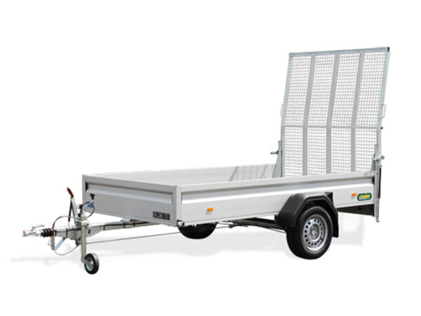 - Stahlgitterauffahrklappe mit Gasfederhubhilfe für einfaches Beladen (über gesamte Anhängerbreite, am Heck montiert)