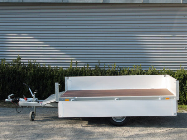 Hochwertiger Pritschenhochlader mit stabiler Bauweise und vielseitiger Ausstattung für sichere Transportlösungen.
